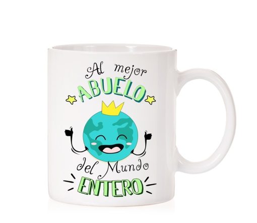 Taza Al mejor abuelo del mundo entero. Se presenta en caja de cartón para regalo con ventana.